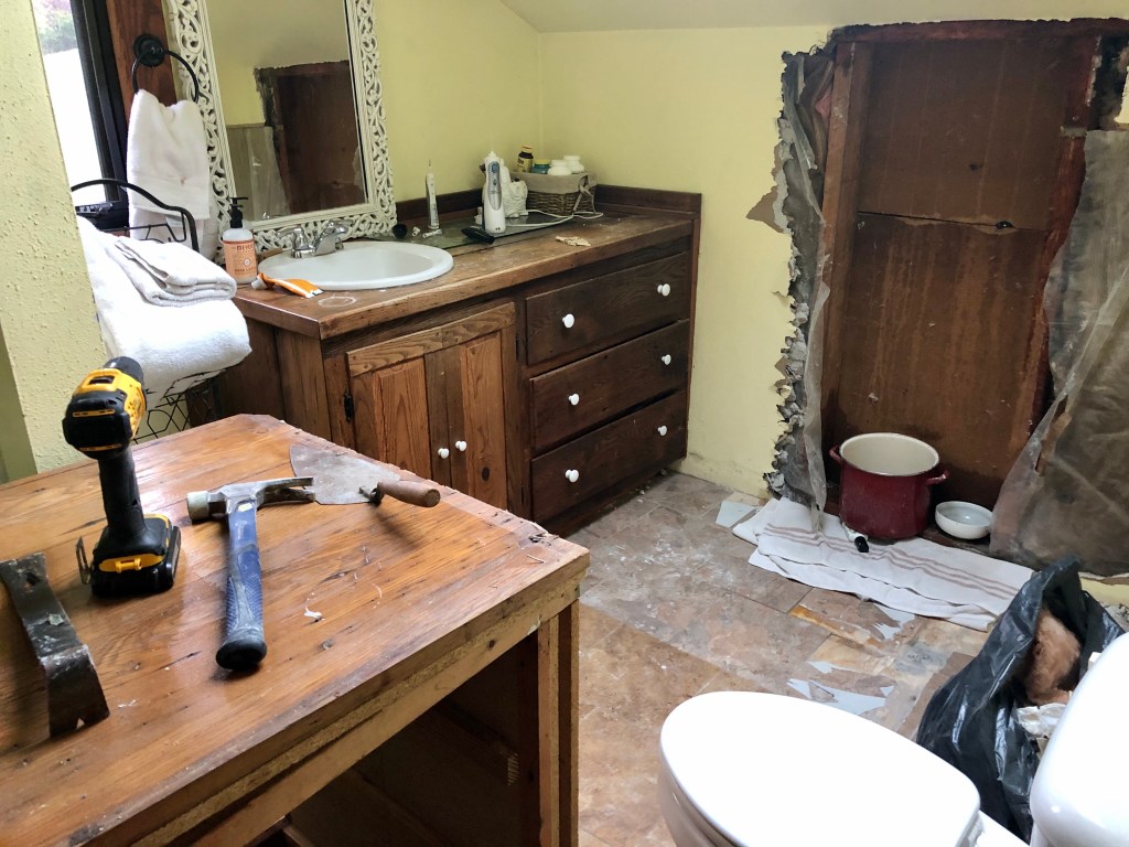 - Tore out ceiling and walls in upstairs bathroom to find and fix a skylight leak